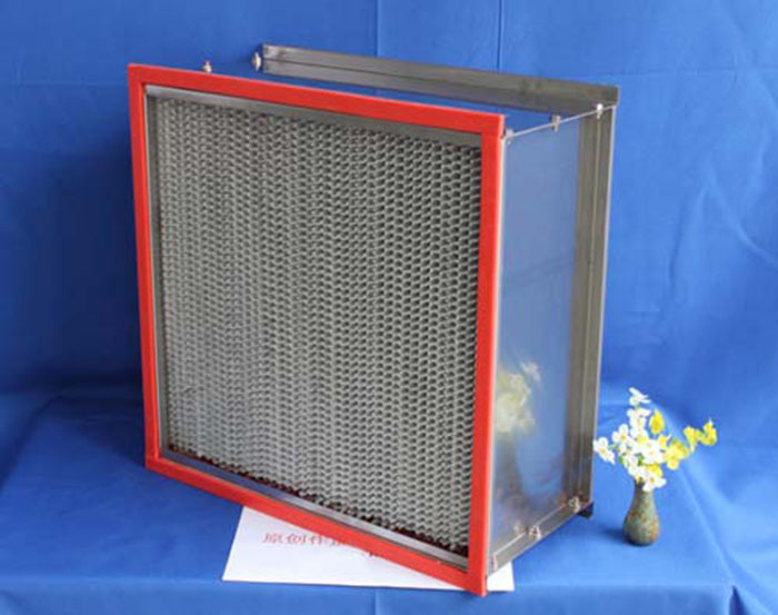 高效有隔板過濾器采用超細玻璃纖維濾紙作濾材,以膠板紙、鋁箔板等材料折疊為分隔,聚氨酯密封膠密封,鍍鋅板、不銹鋼板、鋁合金型材為外框,每臺均經過嚴格則試。